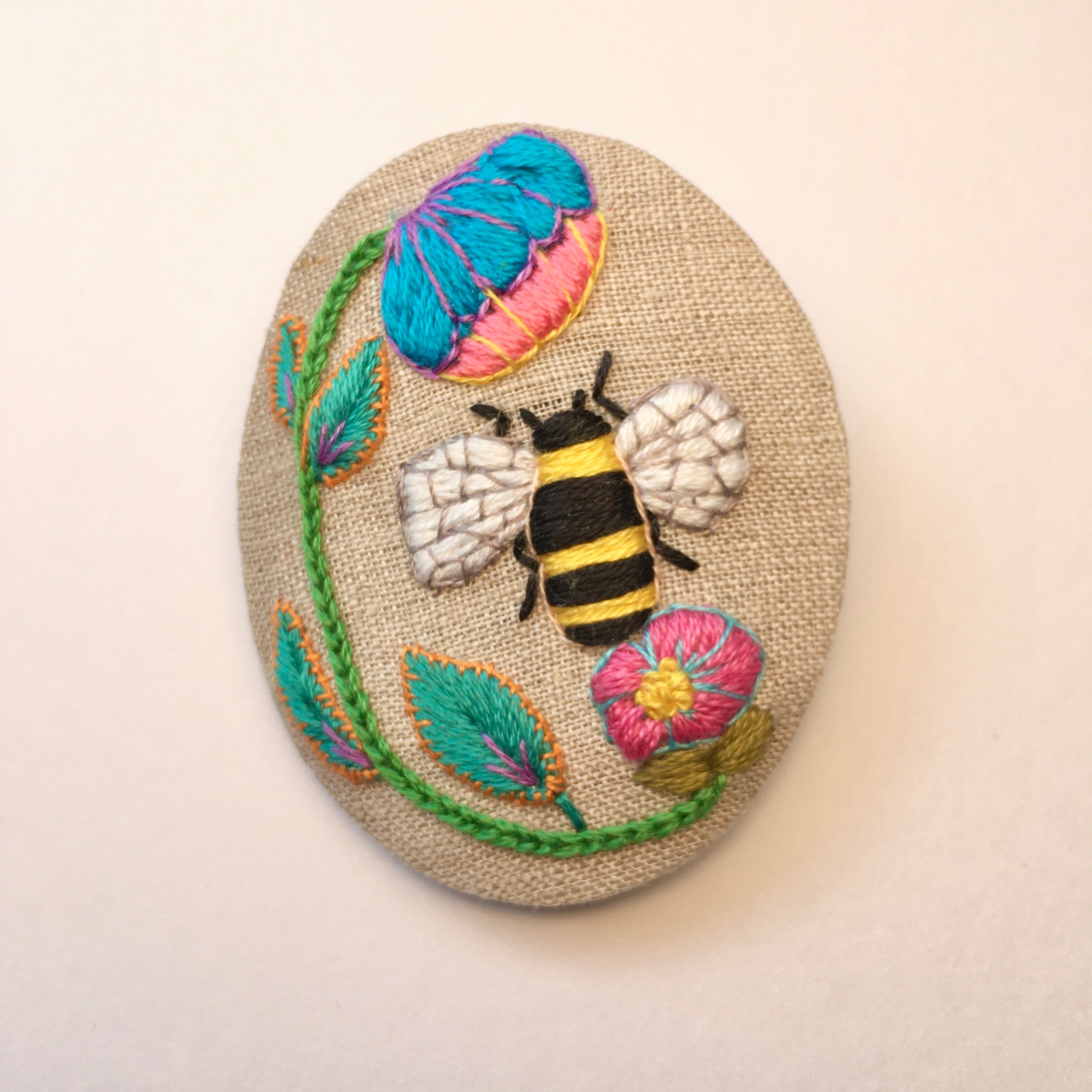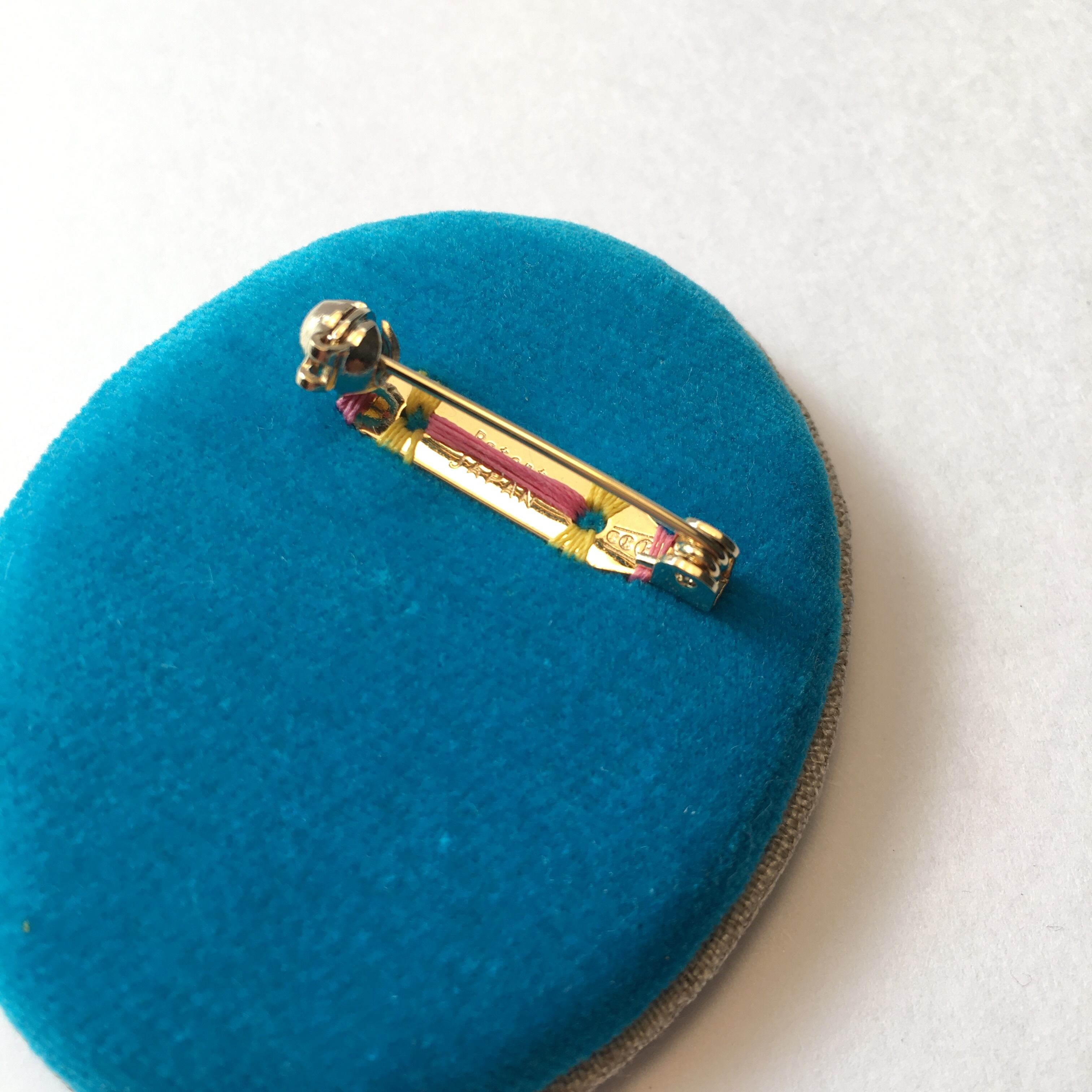 大きめの楕円ブローチです。コーリスヴィヴァスの特徴的なふっくらした刺繍です。裏側は柔らかなビロード生地を使っております。縫い合わせあるため剥がれる心配もありません。
